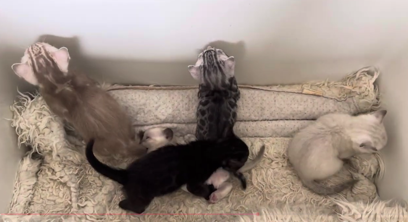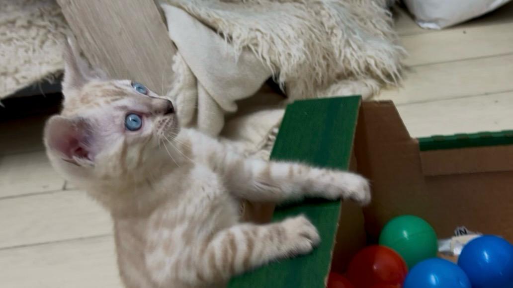 The Silver kitten in this is already reserved from our waiting list, and our Black Bengal is currently on hold, leaving three exquisite Snow boys now open for reservation.