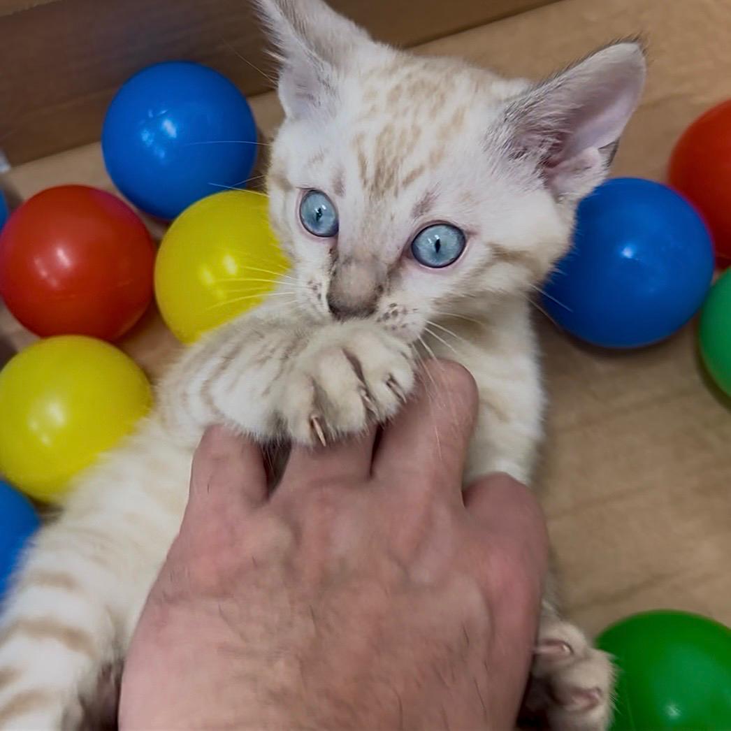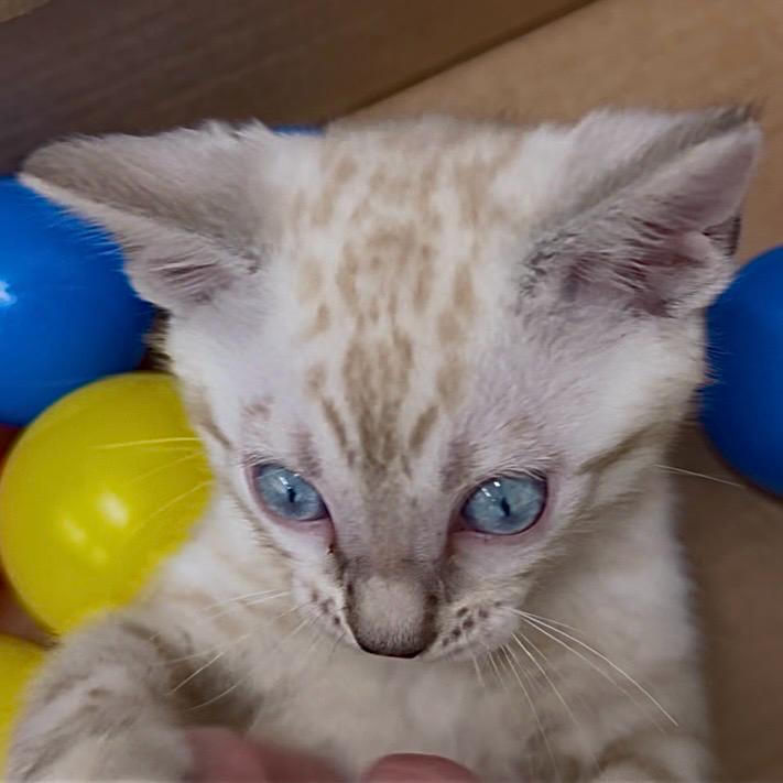 ✨ Silver Snow Lynx – cool, luminous elegance. Light background. Note: marking will get darker as they mature.