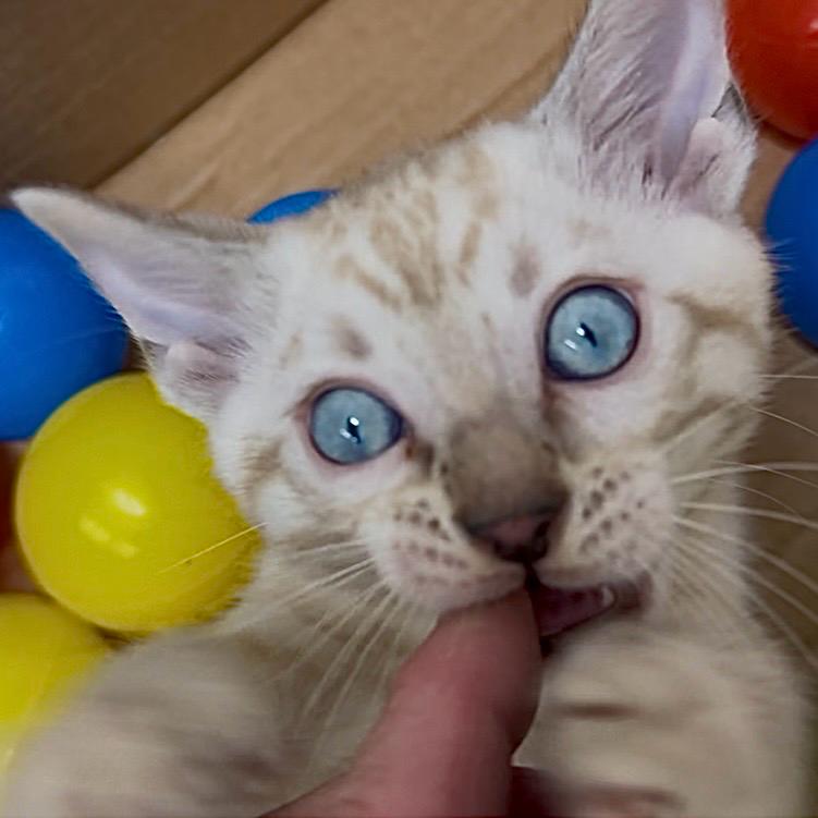 ✨ Snow Mink Sheeted – sheeted marble pattern. His look is reminiscent of a Burmese — soft, warm-toned, and incredibly unique within the Bengal world.