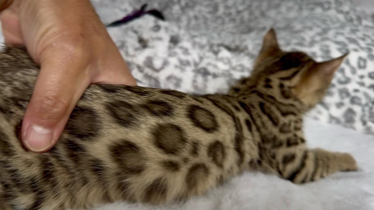 ULLA is a sweet, playful and confident girl. She follows me around and meows for attention. She is a darling. She can go as a singe kitten or can go with one of our ‘Yin & Yang’ marble bengal kittens or one of our Retirees.
