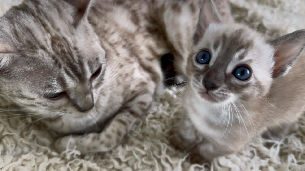 Yin is a handsome Black Silver Sheeted Marble boy, and Yang is a beautiful Snow Mink Sheeted Marble girl. Both are cheeky playful and loving little fur babies!